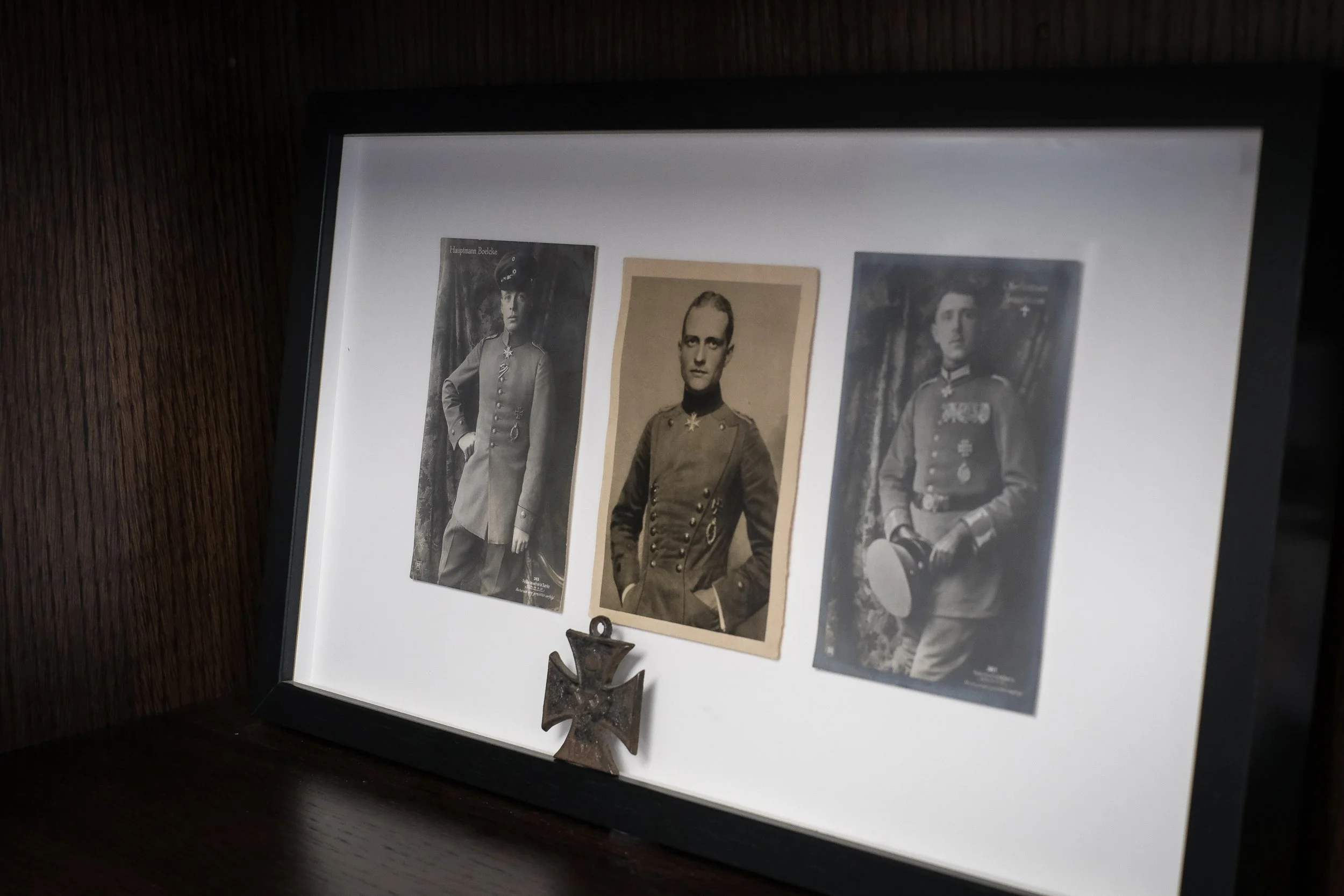 Manfred von Richthofen (centred) with his mentor Hauptmann Oswald Boelcke (left) and Reserve Lieutenant Max Immelmann (right)